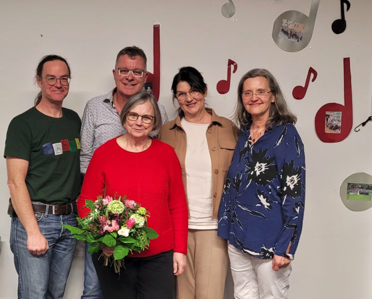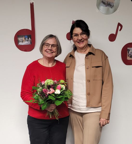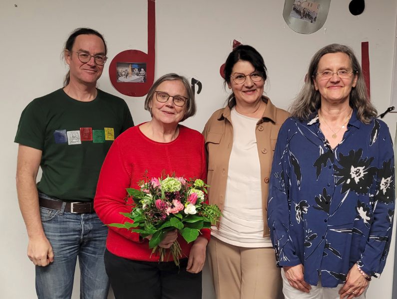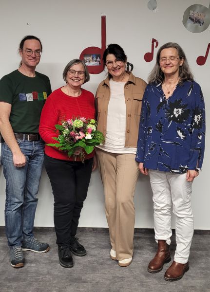 Nach der Wahl gab es die Ehrung für die ausgeschiedene Marion Janke-Schwarzenberger. Marion hatte zehn Jahre das Amt der stellvertretenden Vorsitzenden inne gehabt und dafür gab es Blumen, ein Geschenk und viel Applaus.